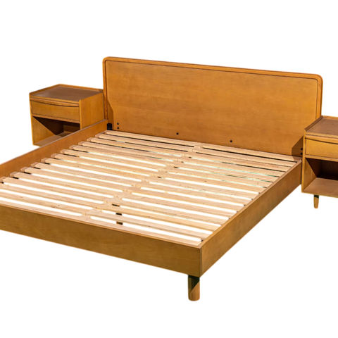 テッサキングミッドセンチュリーデザインウッドベッドナチュラルオーク色