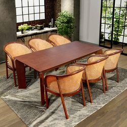 Michelin Hoogwaardig 6-delig Dinerset Rotan Rugstoelen En Bruin Essenhout Voor De Eetkamer Van De Villa Of Het Appartement