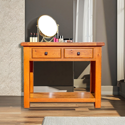 Massief Eiken Houten Kaptafel Met Spiegel En Opbergladen Walnoot Afwerking-Voor Slaapkamer Of Hotel Gebruik