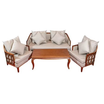印度支那豪华真皮沙发套装家用客厅家具,带灰木软座和枕头,舒适座椅